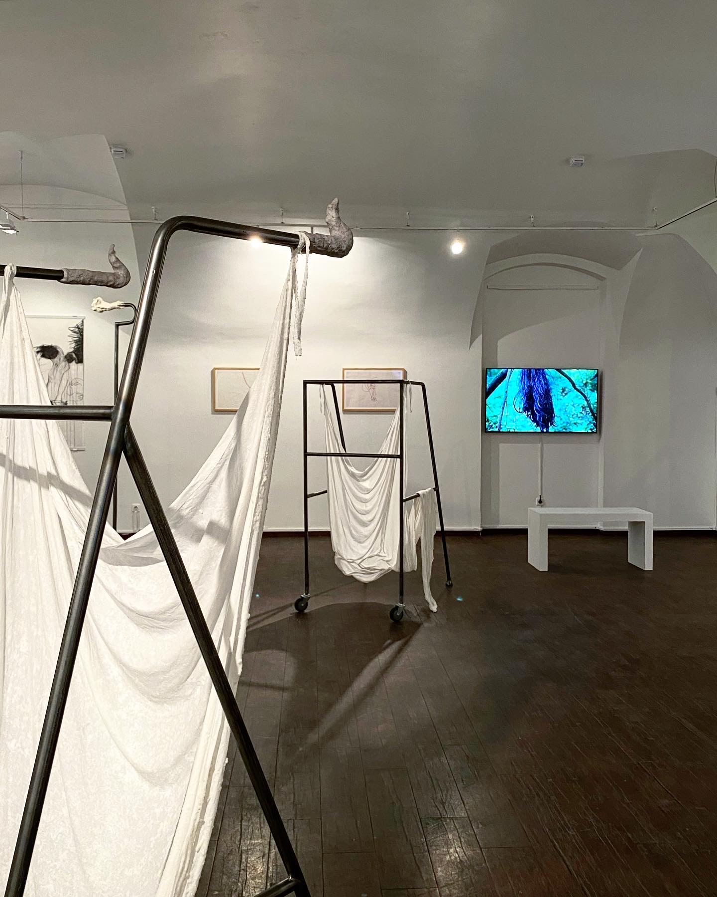 Выставка проходит в двух залах Московского музея современного искусства на Петровке. В первом зале представлена графика, вышивка, скульптура и видео, над которыми Ирина Петракова работала в период с 2015 по 2020 год.